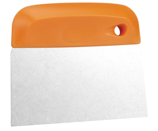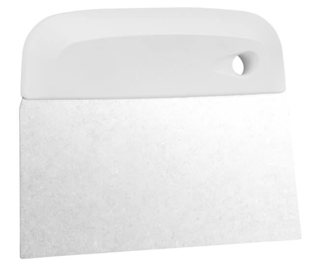 Vikan’s deegsnijder/schraper is de beste metgezel van elke bakker. Hij snijdt en hanteert deeg, verwijdert plakkerige rommel die een borstel zou verstoppen, en gaat behendig om met aangebrand voedsel op tafels en snijplanken. Het flexibele roestvrijstalen mes van 0,5 mm is uitstekend geschikt voor het snijden van vele soorten deeg, gekookt gebak en ander zacht voedsel. Het mes is aan de randen licht afgerond om te voorkomen dat de gebruiker zich in de handen snijdt. De polypropyleen grip is duurzaam en stevig om het lemmet gegoten. Dankzij een ergonomische vingersteun is de deegsnijder/schraper gemakkelijk vast te pakken en herhaaldelijk te gebruiken. Door het druppelvormige ophanggat is opbergen op een muurbeugel of schaduwbord eenvoudig. Deze schraper is een essentieel hulpmiddel voor de voedingsindustrie, waaronder verwerkingsfabrieken, commerciële keukens, restaurants en supermarkten.