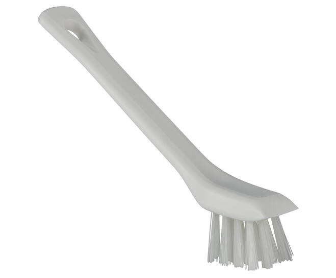 Vikan detailborstel met harde vezels, geschikt voor diverse schoonmaaktaken. De precisieborstel is voorzien van een handige schraaprand waarmee je eenvoudig en snel hardnekkig vuil van oppervlakken verwijdert. De platte handgreep ligt prettig in de hand en zorgt ervoor dat je nauwkeurig kunt werken. Door met je wijsvinger op de borstelkop te duwen, kun je tijdens het schoonmaken extra kracht zetten. Na gebruik kan de borstel gereinigd worden in de vaatwasser of autoclaaf. De Vikan borstel is beschikbaar in drie kleuren en heeft een afmeting van 150 x 27 x 90 mm (lxbxh). Verkrijgbaar per stuk.